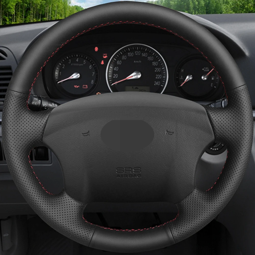 Чехол на руль из искусственной кожи, черный, для Mitsubishi Pajero ...