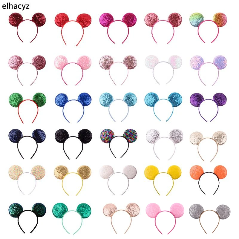 10 шт.лот 2021 новый шикарный ободок 3,3 дюйма с двусторонними блестками и ушками мыши модный ободок для волос для женщин и девочек аксессуары для волос