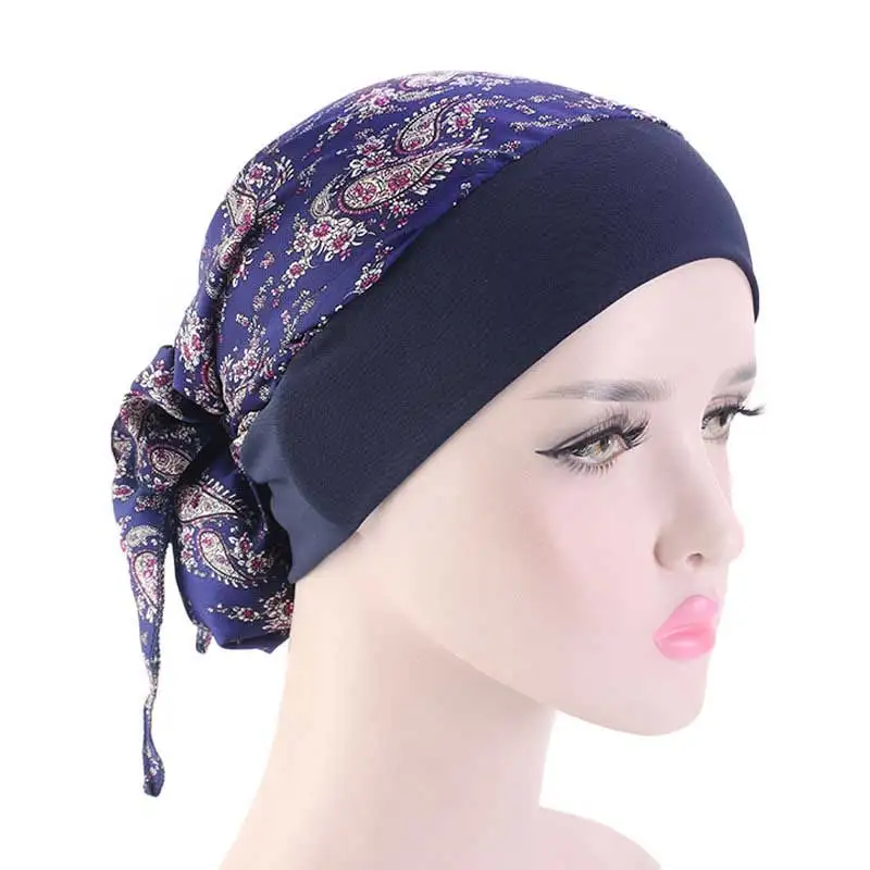 Мусульманский хиджаб тюрбан шляпа Головной Платок предварительно завязанный длинный хвост Кепка Chemo стрейч-бандана