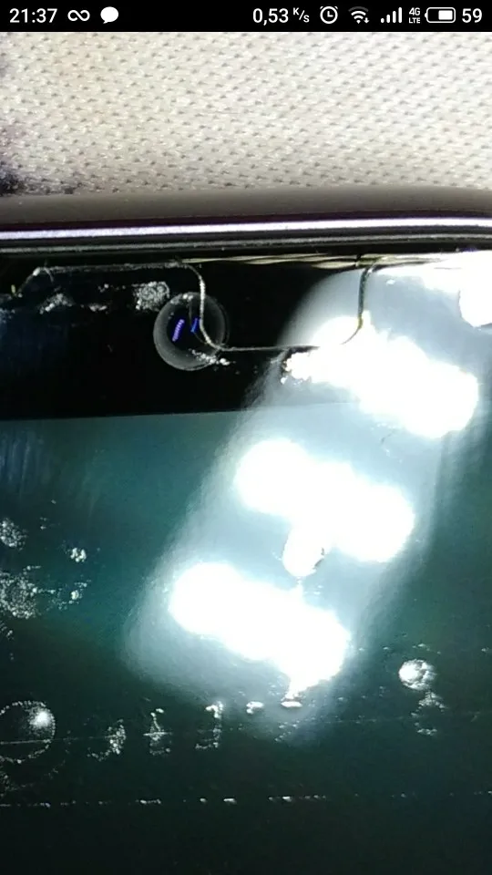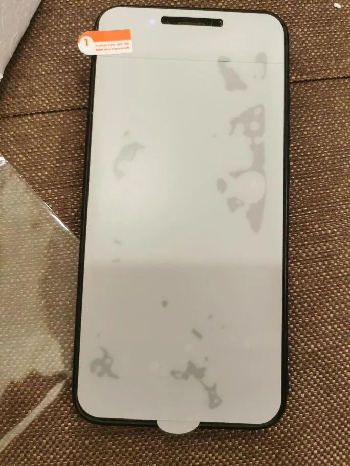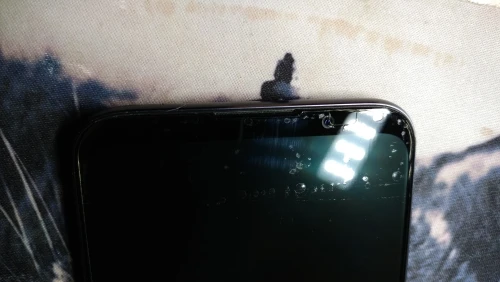 отверстие под фронтальную камеру смещено в сторону и не совпадает. и какие-то полосы на плёнке в хаотичных направлениях.