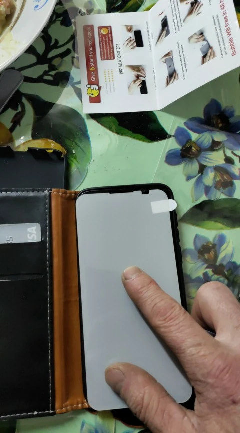 Отличная пленка. Есть специальная насечка, на защитном слое, чтобы было удобно наклеивать. Еще в комплекте салфетки, инструкция и пластиковый выравниватель. Шло долго, но результатом я довольна. Все отверстия совпали, приклеилось без пузырей, легко. И не трескается, как защитные стекла. Супер, если получится и придется, то буду теперь только пленку покупать.