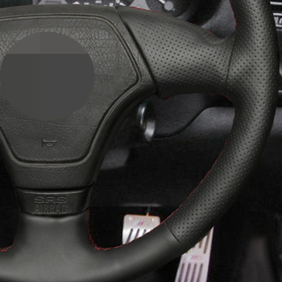 Черная искусственная кожа DIY ручной сшитый чехол рулевого колеса а...