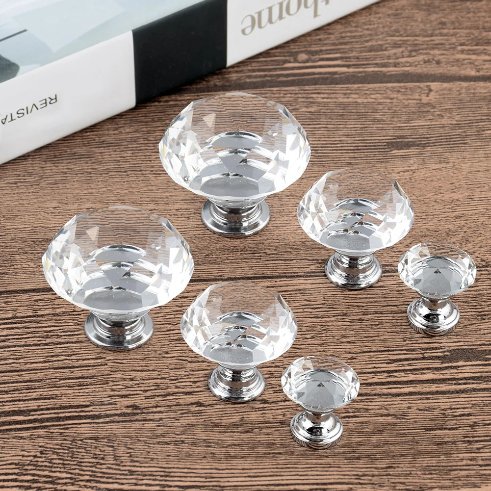 Ручки из хрустального стекла в форме алмаза, выдвижные для шкафа, ящика, кухонного шкафа, двери, гардероба, фурнитура, 20 мм, 30 мм, 40 мм