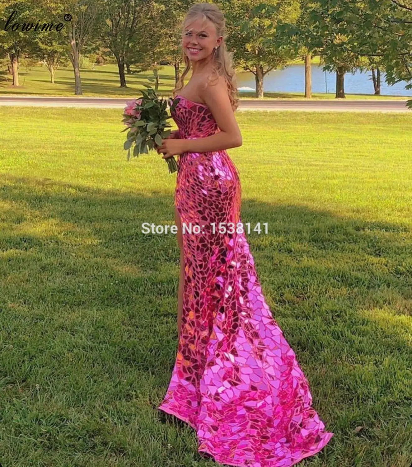 Женское блестящее вечернее платье-русалка, розовое платье в пол с к...