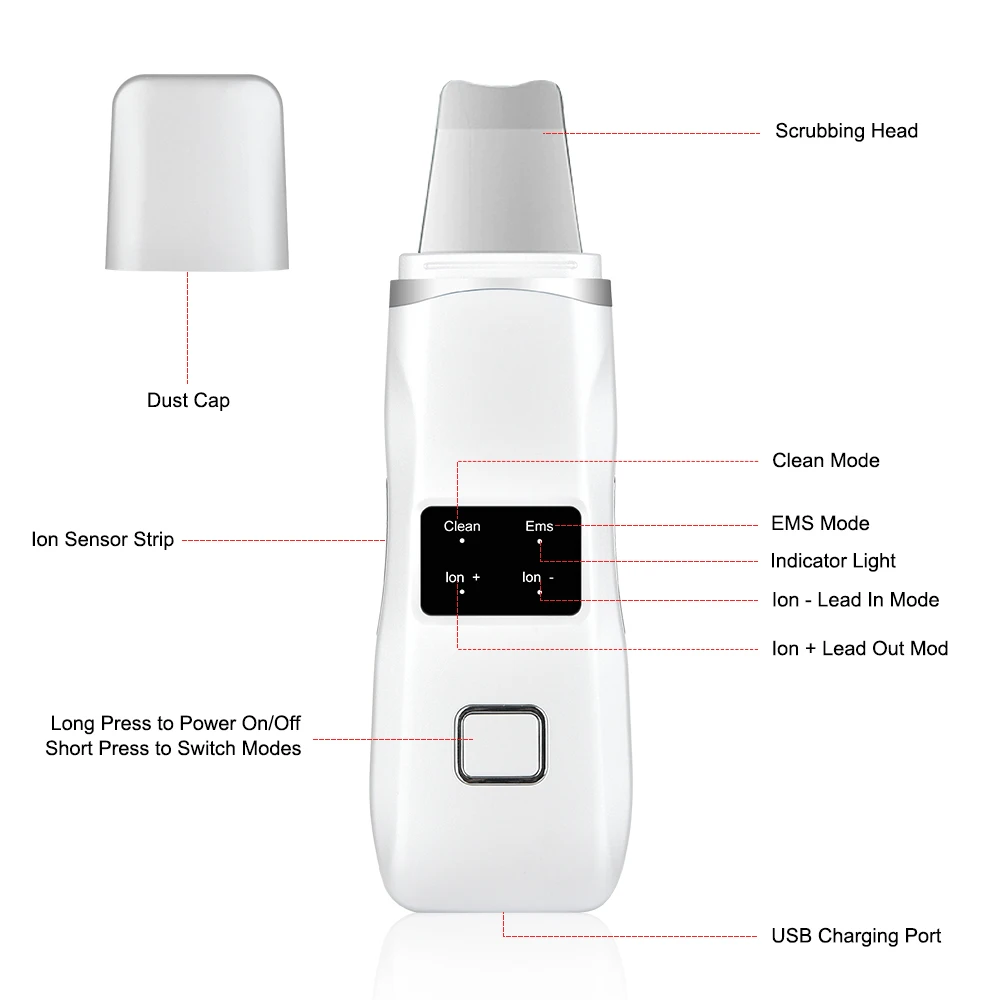 Особенности1. Принять ультразвуковую волну и высокочастотную вибрацию будет глубоко проникать в вашу кожу, чтобы удалить грязь для более эффективной очистки, улучшить микроциркуляцию, чтобы повысить метаболизм и представить питательные вещества для достижения лучшего впитывания лосьона и сыворотки, легко успокаивает вашу кожу и восстанавливает здоровье кожи.2. Полностью 4 регулируемых режима работы и каждый режим в сочетании со светодиодной фотонной терапией для повышения производительности лечения, может полностью удовлетворить ваши универсальные повседневные требования по уходу за кожей, практично для решения проблем лица, таких как удаление акне, борется с угреями, сужает поры, уменьшает морщины и подтягивает кожу.3. Одна кнопка управления, долгое нажатие 2 секунды для включения/выключения питания и короткое нажатие для переключения режимов работы, в то время как индикация позволяет непосредственно и ясно работать статус монитора, удобный для работы.4. Эргономичная изогнутая головка лопаты может легко вытереть ваше лицо с идеальной посадкой, когда ваша работа под углом около 45 градусов, безболезненная и не раздражающая вашу нежную кожу, подходит для всех типов кожи, даже для чувствительной кожи.5. Легкий корпус и компактный размер обеспечивают удобные ручки, вы можете использовать его когда и где угодно, независимо от того, дома, в офисе или во время путешествия на открытом воздухе. Светодиодная функция:Красный (605 ~ 700 нм)Повышает кровообращение и стимулирует клетки кожи к выделению коллагена и ускоряет обмен веществ, делая вашу кожу твердой и блестящей в гладкой текстуре.Синий (450 ~ 480 нм)Подавляет рост акне с противовесом и эффектом восстановления кожи, уменьшает риск оставления шрамов.