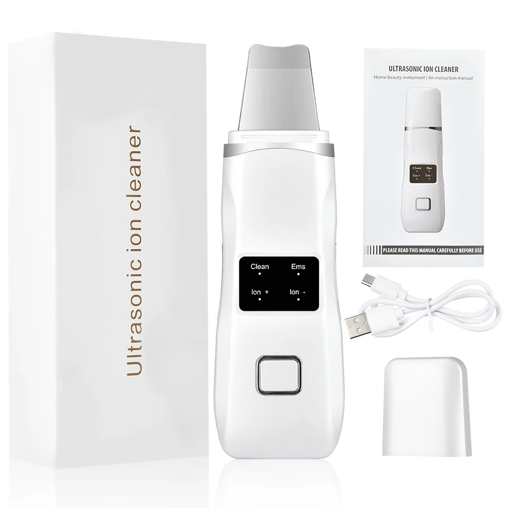 Ультразвуковой Скруббер кожи светодиодный фотон Ион Глубокая чистка лица Вибрационный массажер Перезаряжаемый USB акне удаление черных точек очищающее средство