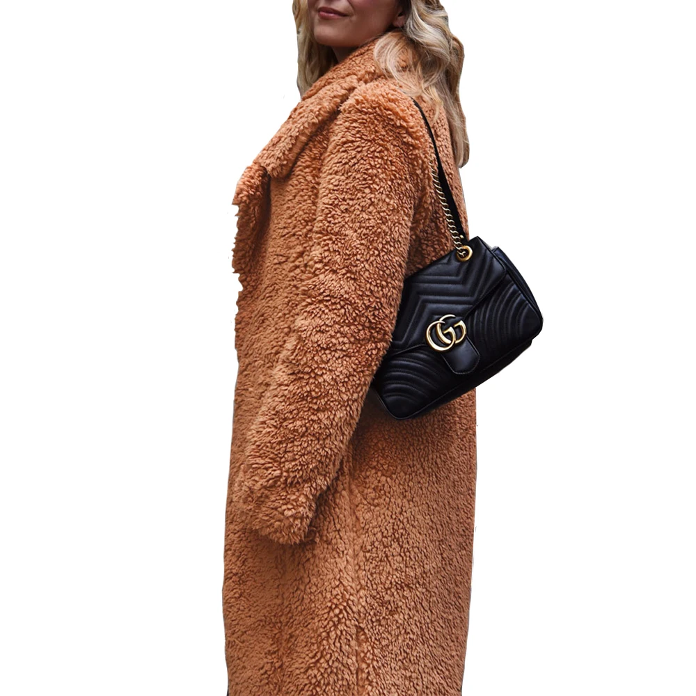 Пальто женское из искусственного меха, осенне-зимнее, теплое, длинное