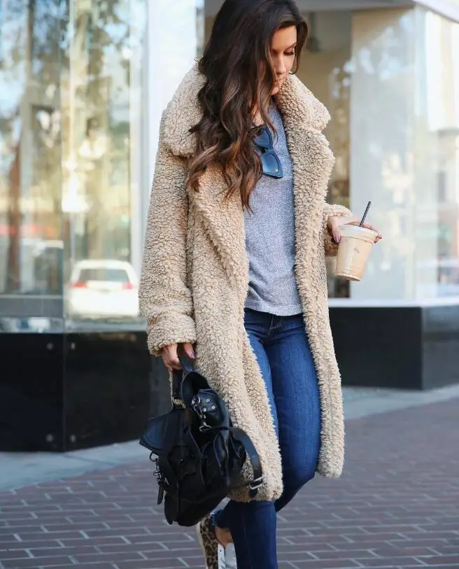 Осень-зима 2021, пальто из искусственного меха, женское теплое плюш...