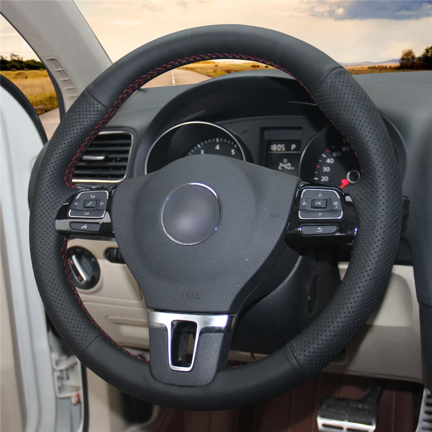 Искусственная кожа из искусственной кожи черного цвета чехол рулевого колеса автомобиля для Volkswagen VW Tiguan Golf Plus Passat CC Jetta Sharan EOS Caddy 2011