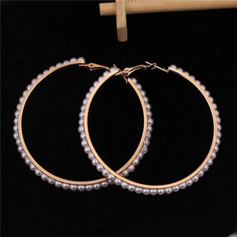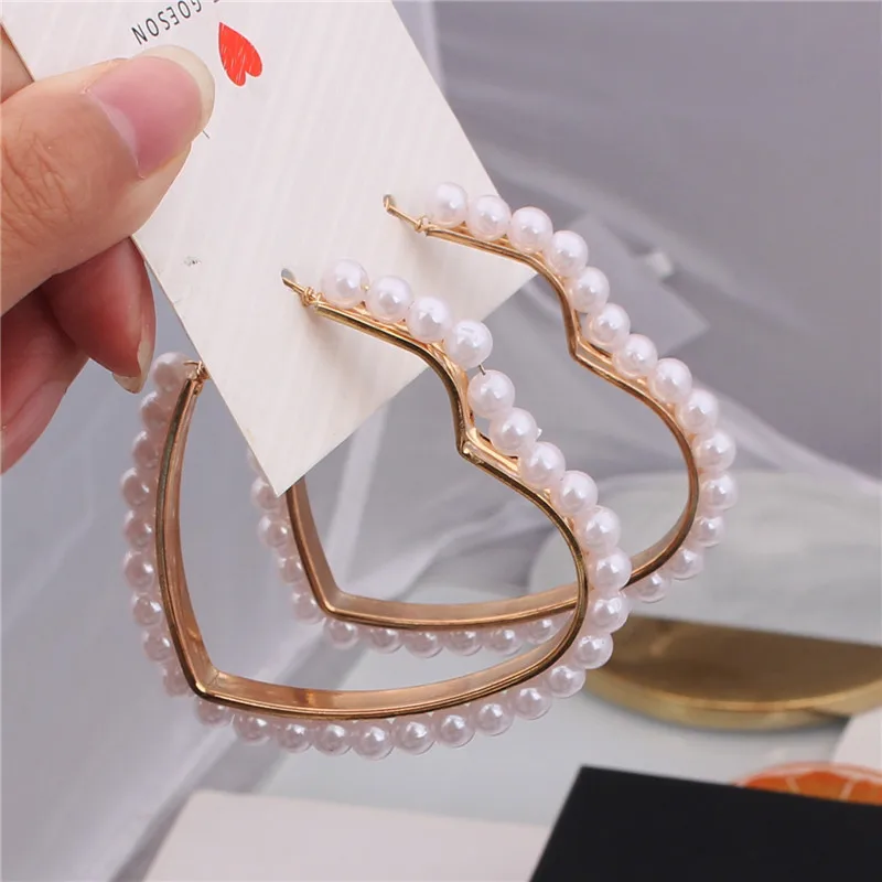 Крупные серьги-кольца с большим сердцем для женщин, металлические женские серьги с имитацией жемчуга в богемном стиле