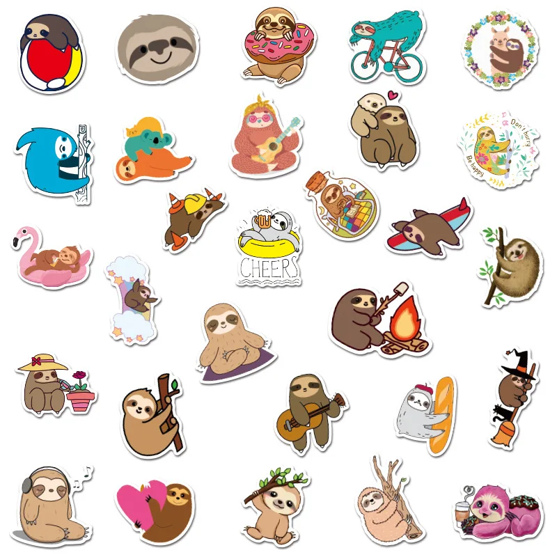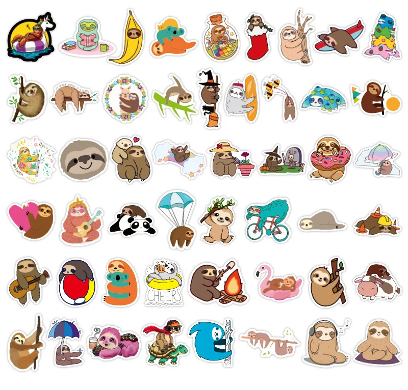 Наклейки Ransitute R1011, 50 шт.компл., с изображением животных, ленивцев, скрапбукинга, наклейки для гитары, ноутбука, багажа, автомобиля, холодильника, граффити