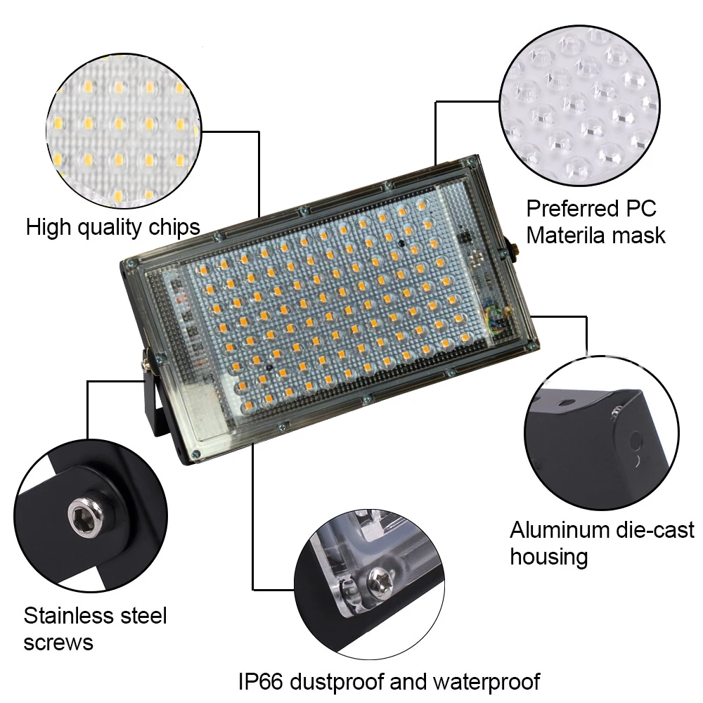Светодиодный прожектор AC 220 В, 230 В, 240 в, RGB, наружный прожектор, прожектор IP65, водонепроницаемый, 50 Вт, 100 Вт, светодиодный уличный фонарь, ландшафсветильник светильник