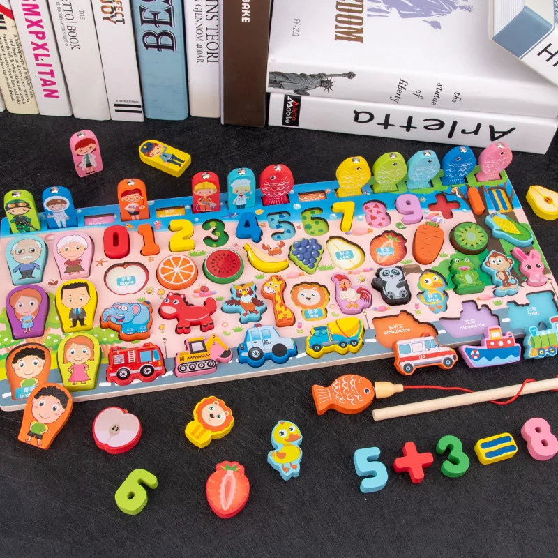 Деревянные 3d-блоки, для детей, Монтессори, магнитная, для рыбалки, настольная игра с цифрами, буквами, совпадающие блоки, Детская обучающая игрушка, подарок