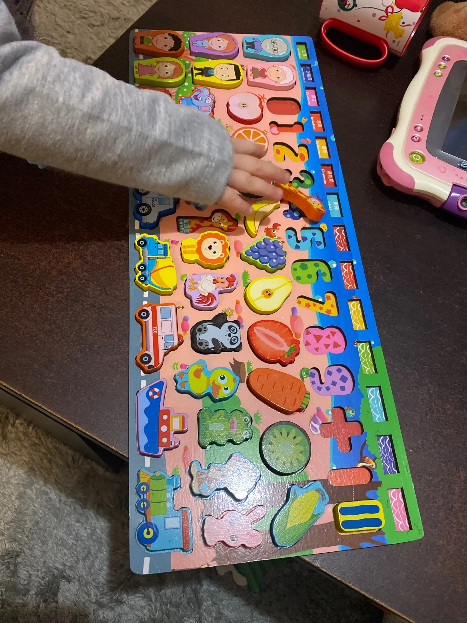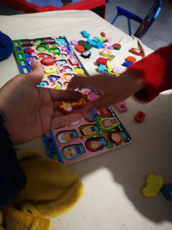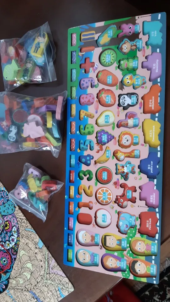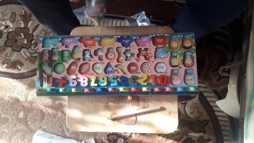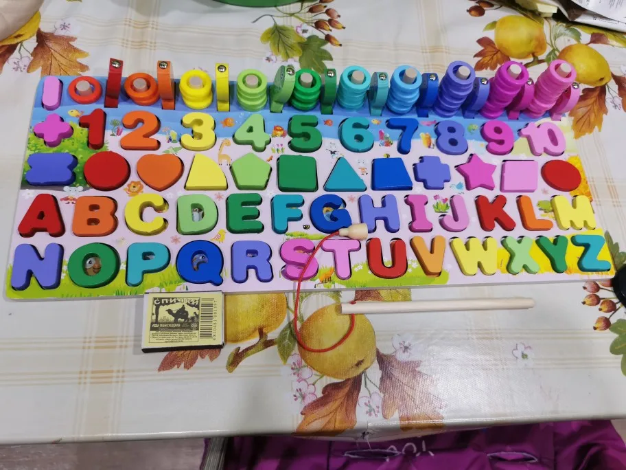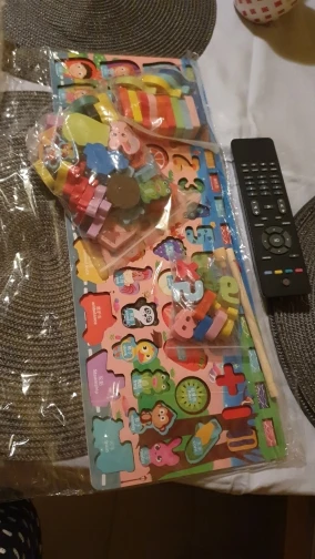 один угол пришёл сколотым, в целом нормальная вещь для развития сообразительности и мелкой моторики ребёнка, мне лично не понравилось то что на основной плоскости рисунки и надписи сделаны не краской а дешевой бумажной ламинацией которая слетает при малейших касаниях, а так же при протирке компонентов из упаковки т.е. самих фигурок обычной увлажненной мыльным раствором тряпкой краска с них стиралась "почти как обычная гуашь", так что будьте внимательны при обработке дезинфекции при распаковке ( попробуйте в незаметном месте), это делает каждый уважающий себя и своё чадо родитель - особенно ввиду теперешней обстановке с covid-19, продавец ещё положил какую-то красную тесёмку с подвеской похожую на арахисовый плод маленький, возможно это какой либо символ в Китае я не в курсе, лежала она отдельно вне упаковки. Было бы я думаю не на много дороже покрыть сверху фигурки и саму основную часть прозрачным лаком надёжность и качество возрастут а положительных отзывов станет на порядок больше.