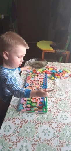 Если честно, то я ждала магнитную доску, что все эти детали на магнитиках. на магнитиках только те фигурки, которые стоят наверху. жаль. нам 1.8, рановато. Мелко.