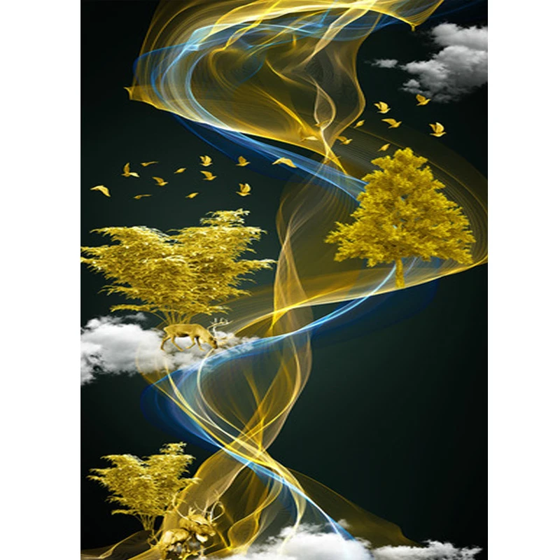 Абстрактные Золотые деревья птица пейзаж 5D Diy алмазная живопись полный квадратный Круглый Алмаз вышивка крестиком наборы MosaicZP-1814