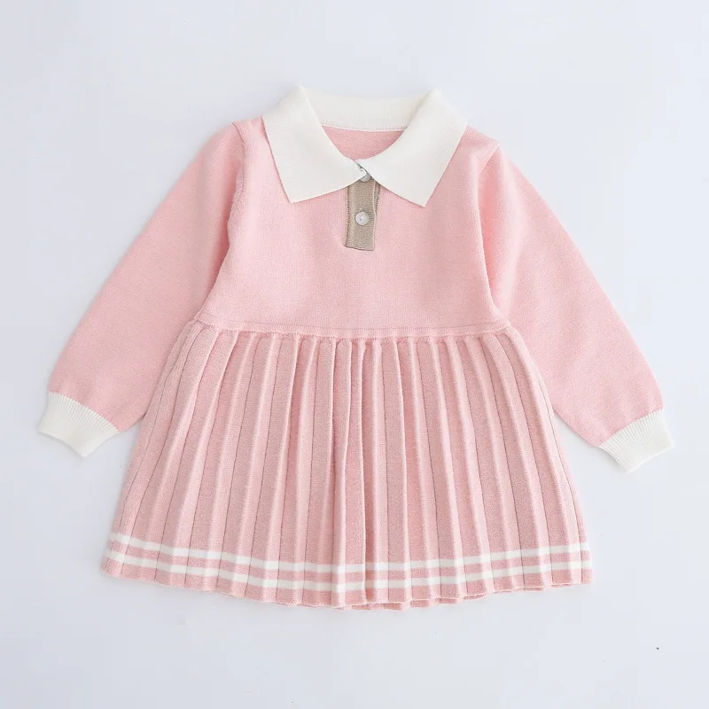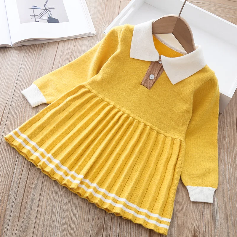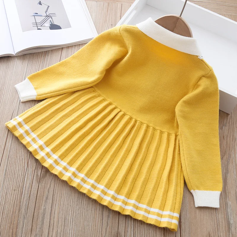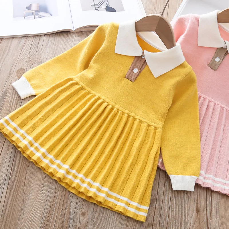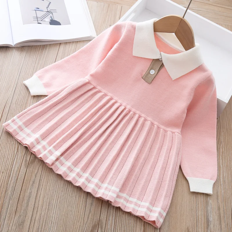 Осенне-зимние детские платья для девочек; Однотонная одежда с длинными рукавами; Вязаная одежда для маленьких девочек; Платье принцессы; vestidos