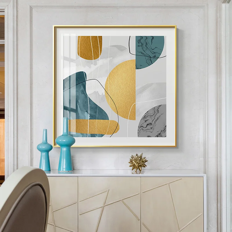 Абстрактная красочная Геометрическая живопись на холсте модный плак...