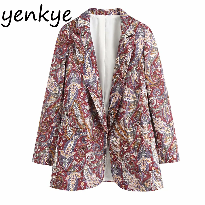 Блейзер Женский с винтажным принтом, офисный Повседневный тонкий пиджак с английским воротником и длинным рукавом, модная верхняя одежда на осень
