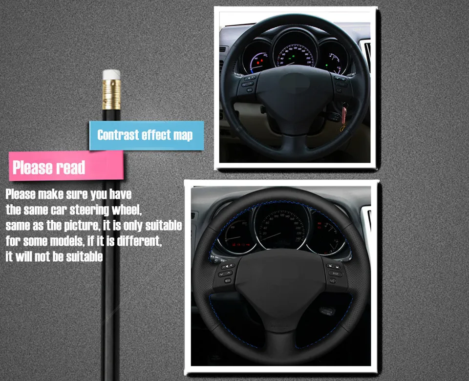 Пожалуйста, прочтите перед покупкой (если вам нужны другие продукты, вы также можете проконсультироваться со службой поддержки клиентов) Перед покупкой, пожалуйста, проверьте рулевое колесо вашего автомобиля и сравните с рулевым колесом на картинке. (Наш чехол на руль является индивидуальным товаром, если есть какая-либо разница, она не будет применяться)! А Это чехол на руль, а не на руль! А Этот товар подходит для Toyota Corolla Verso Camry Lexus RX330 RX400h RX400 2004 других моделей. Если у вас есть какие-либо вопросы, сначала свяжитесь со службой поддержки клиентов