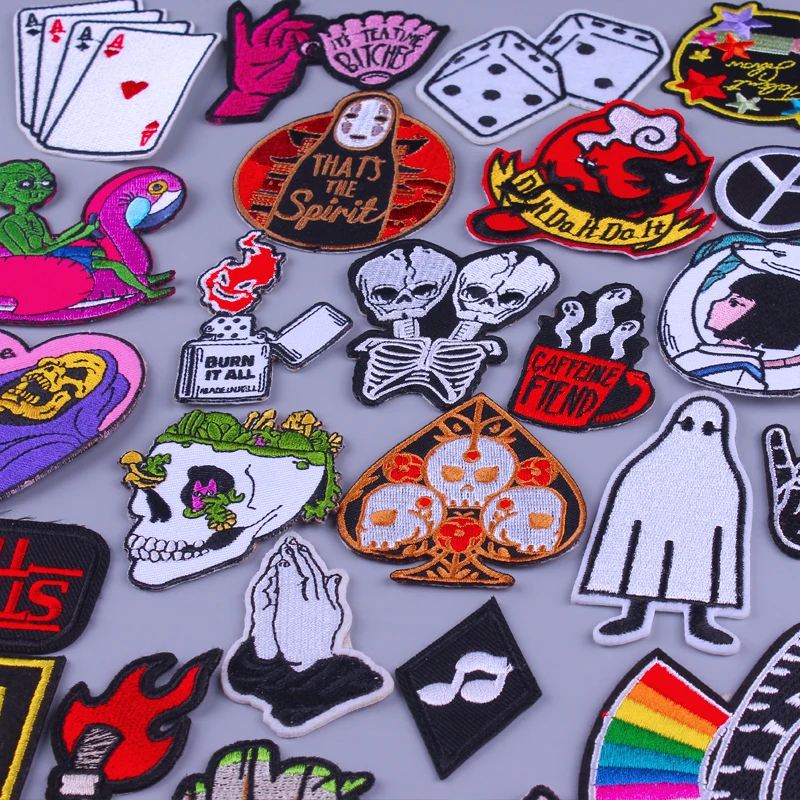 Нашивки в стиле панк с черепом на одежду, Мультяшные аниме полосы, вышитые нашивки для одежды, термоклейкие нашивки для одежды, значки
