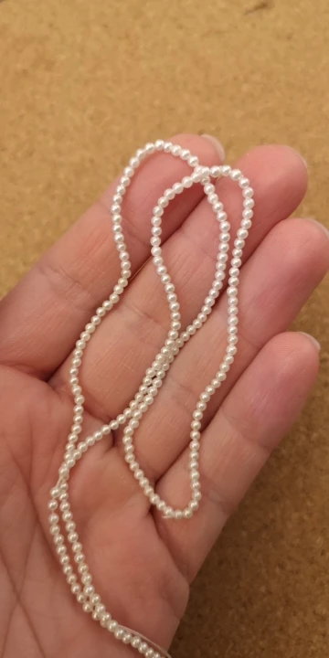 Бусины очень красивые! Без брака, окрас сияющий белый. Посылка дошла очень быстро, отслеживалась. Товар был хорошо упакован.