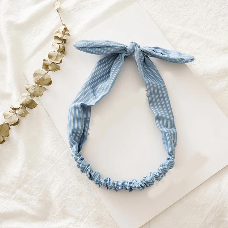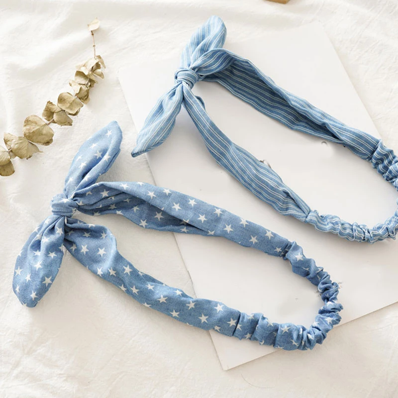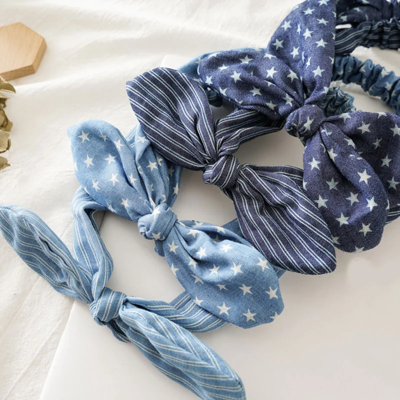 Повязка на голову женская с бантом, эластичная джинсовая повязка на голову с узлом