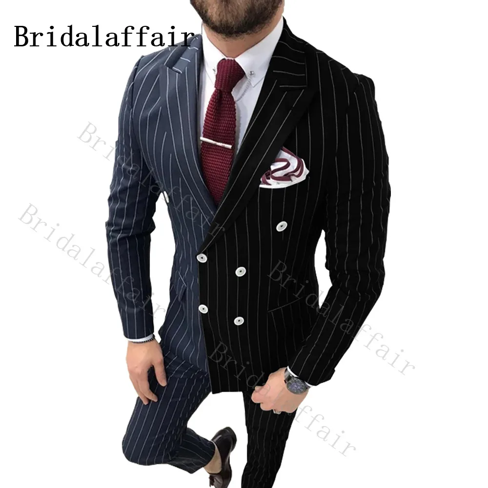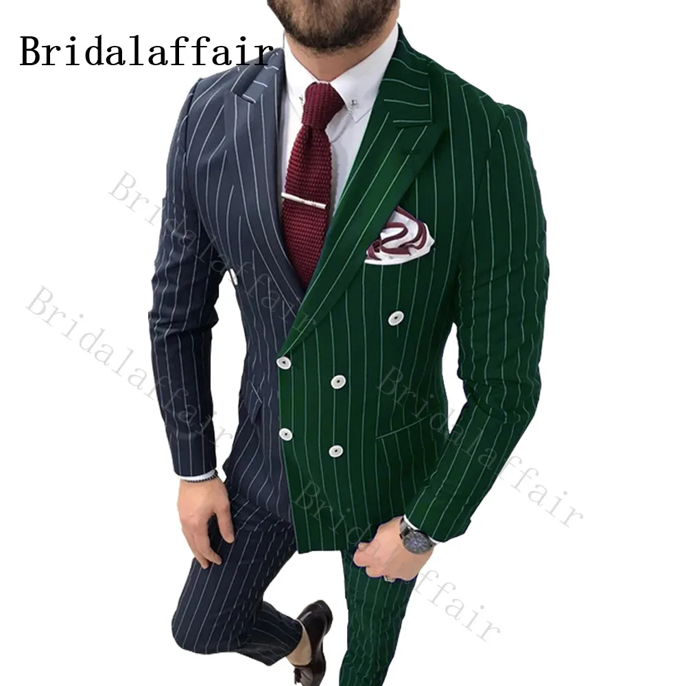 Мужские костюмы Bridalaffair темно-зеленого цвета, приталенный костюм из 2 предметов, полосатый двубортный смокинг для выпускного, классический деловой пиджак, Блейзер, брюки