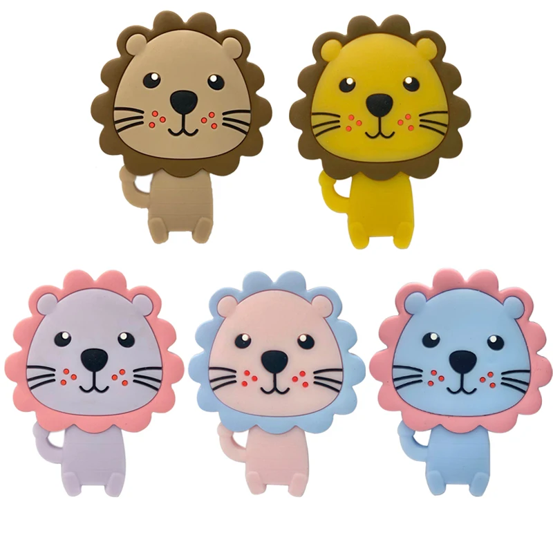 5 шт. пищевой силикон зубной прорезыватель для малышей игрушка для прорезывания зубов кулон Медведь Кролик Кот динозавр бусины DIY Бегемот, Лев для жевания