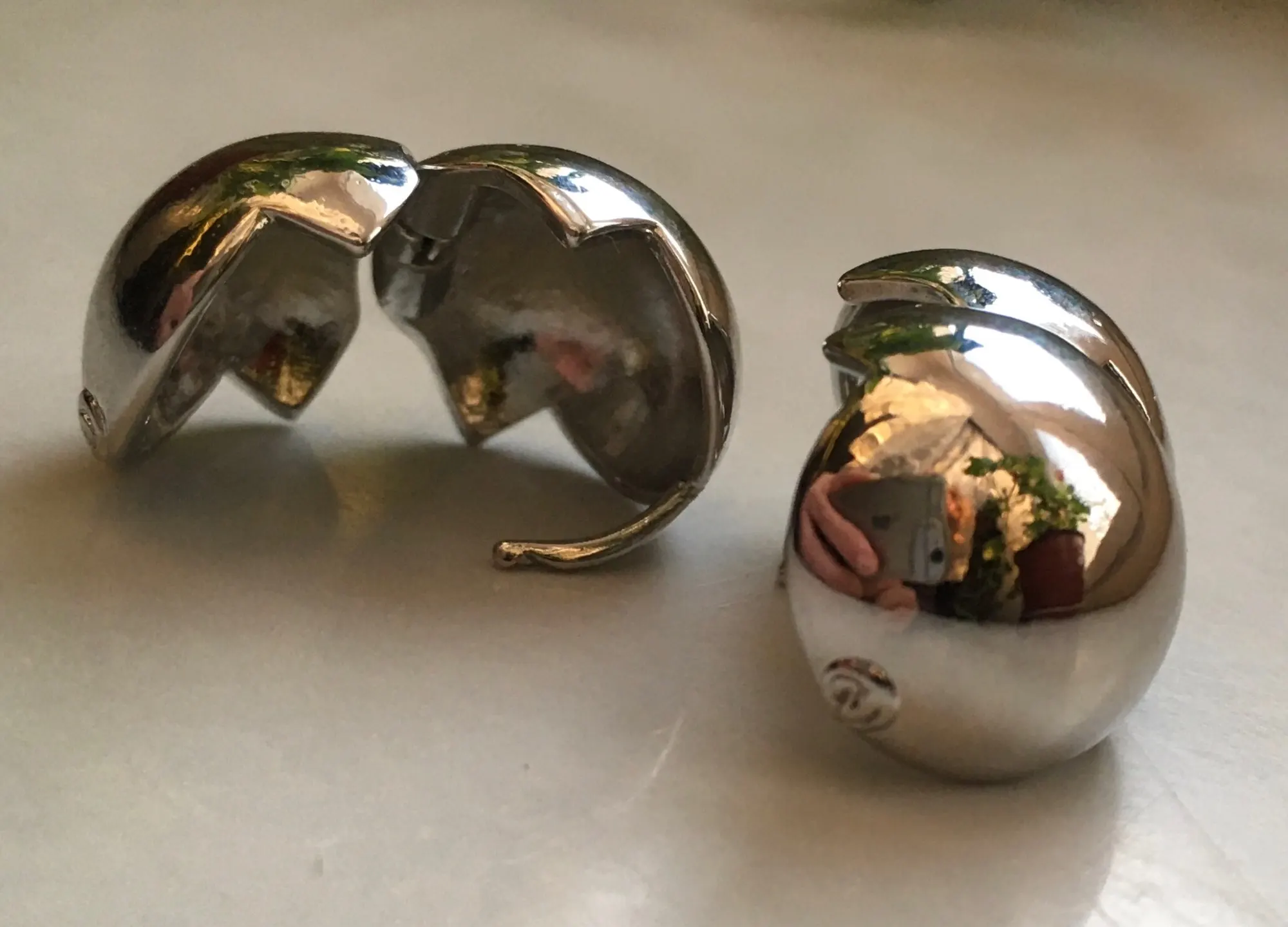 Простые, но необычные и элегантные сережки. Качество хорошее, отполированы, без царапин и сколов. Шарики довольно крупные, тяжеленькие. Покупкой довольна. Доставка около трёх недель. Упакованы в подарочную коробочку.