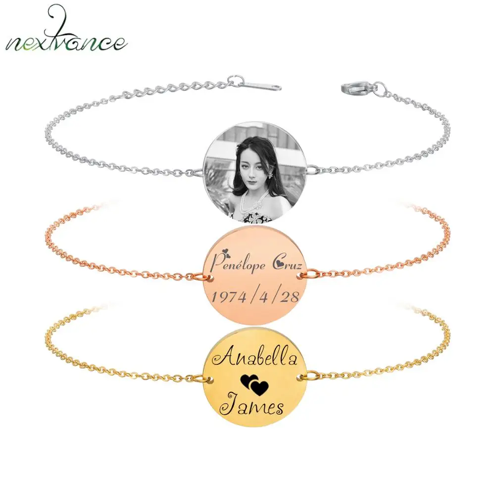 Nextvance Персонализация гравировка имя Дата Браслет с фото на заказ круглая Регулируемая нержавеющая сталь для женщин подарок на день рождения Оптовая продажа