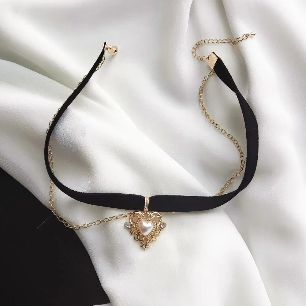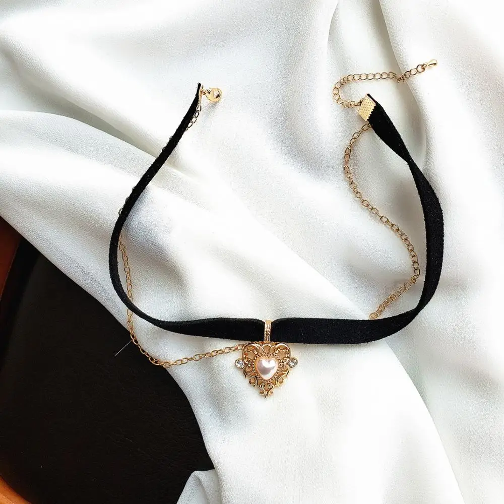 Цепочка-чокер Женская бархатная с подвеской в виде сердца и золотого персика