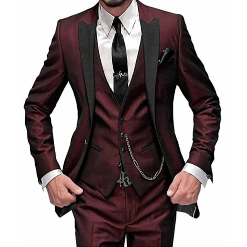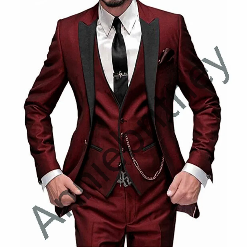 Индивидуальный заказ 2022 бордовые мужские свадебные костюмы для выпусквечерние вечера смокинги для жениха комплект из 3 предметов приталенный деловой мужской костюм (Блейзер + жилет + брюки)