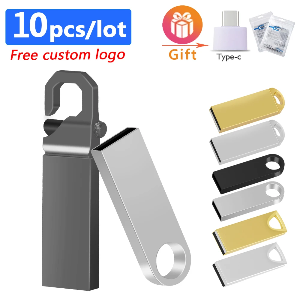 10 шт.лот металлический флеш-накопитель с бесплатным логотипом 16 ГБ 32 ГБ 8 ГБ 4 ГБ pendrive64гб USB 2,0 флеш-накопитель Usb для подарка