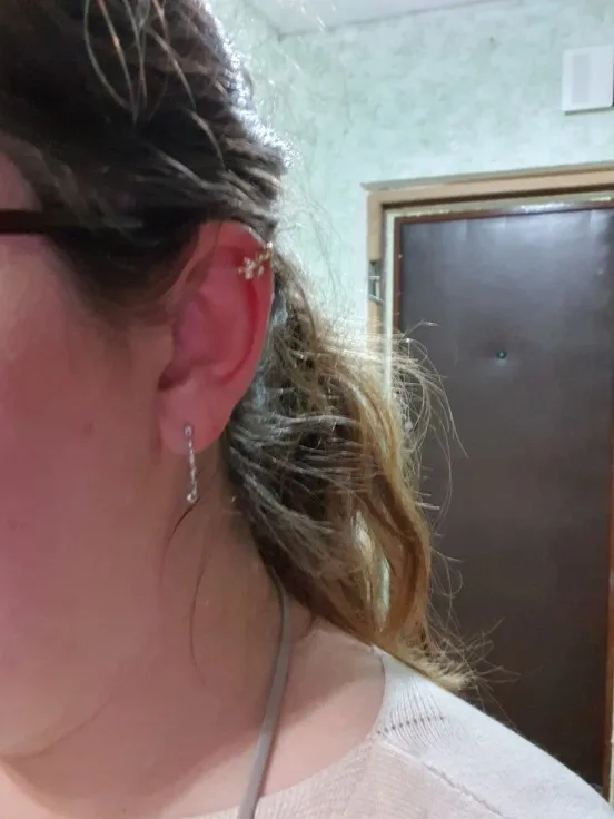 Проучила все в срок! Очень нравится, продавца рекомендую! Можно регулировать плотность украшения на ухе, чтобы сидело удобно на любом.