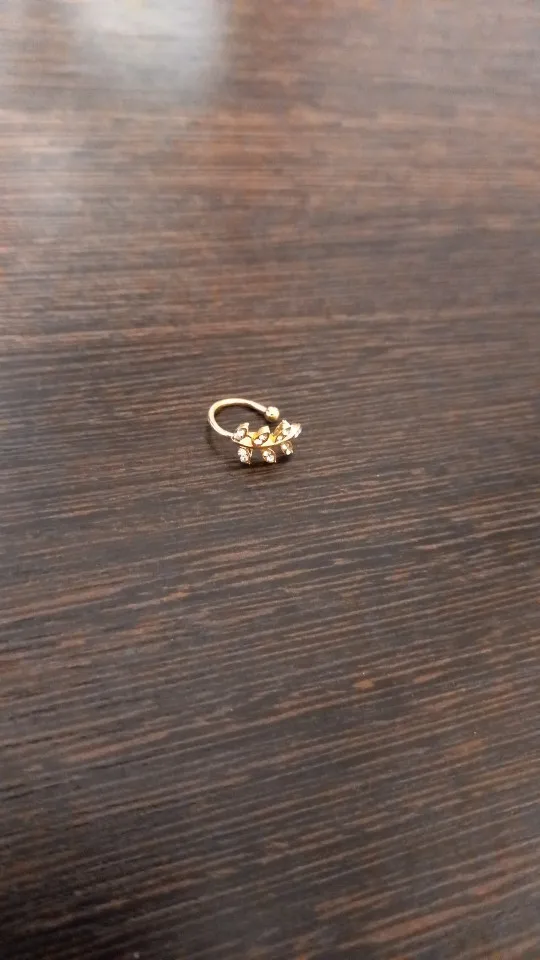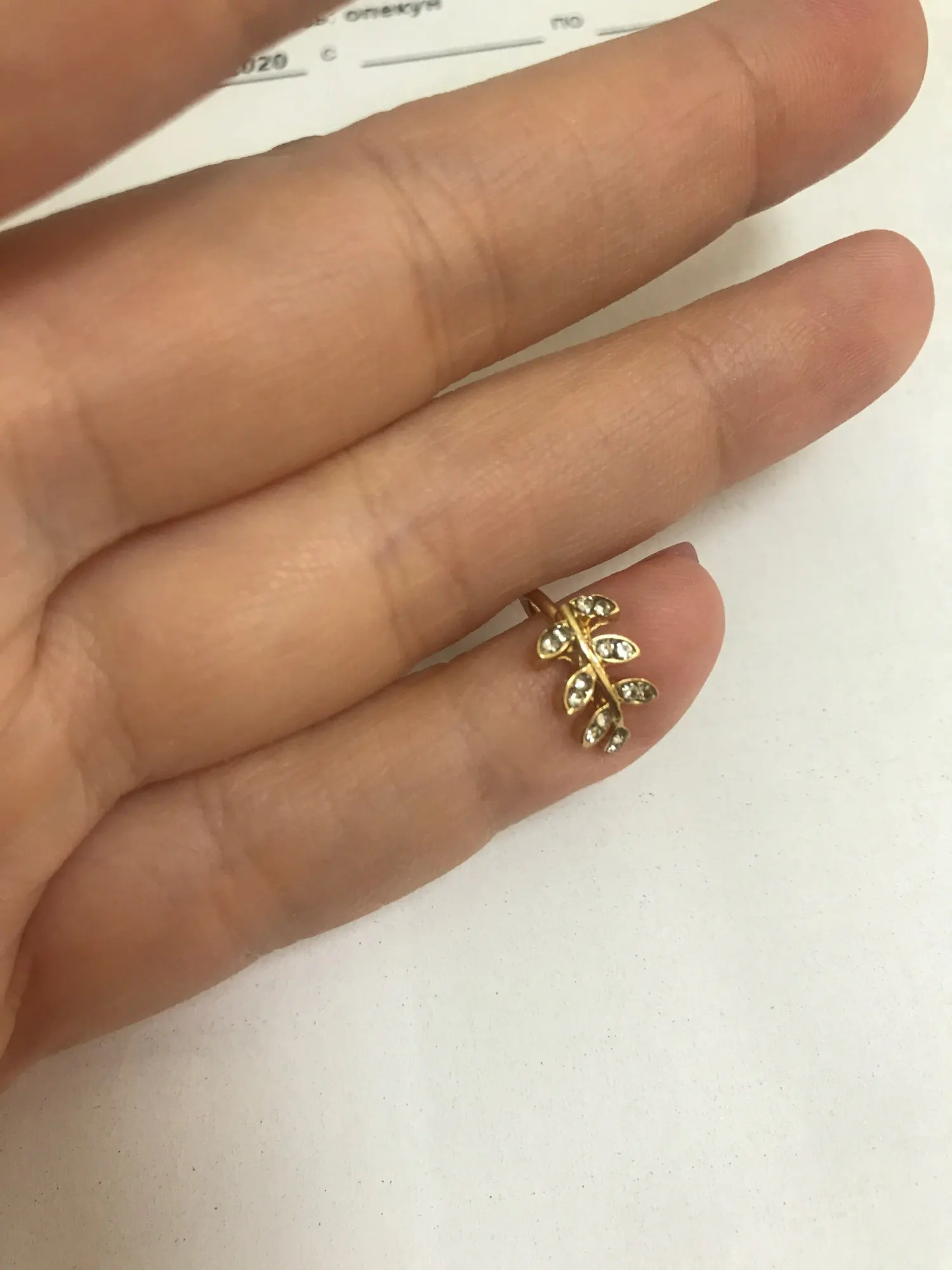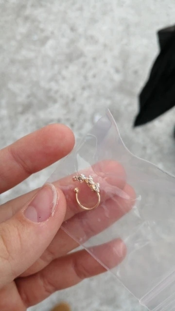 Замок не фиксируется, можно легко потерять. Смотрится красиво. Хотела носить во второй дырке, но она совсем не держится, даже на первой может перевернуться листочек вниз.