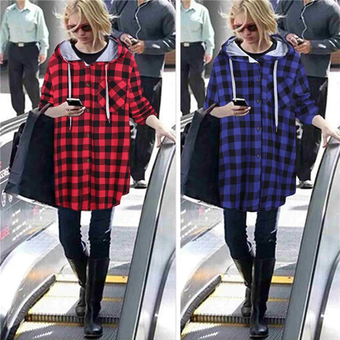 Женская однобортная куртка с капюшоном, пальто в клетку с длинным рукавом, размера плюс, 5XL, весна-лето