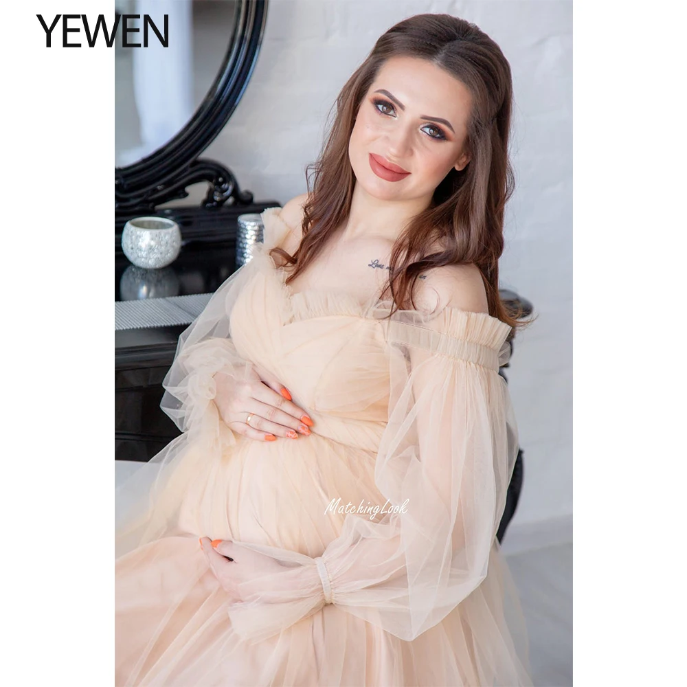 Шампанское платье для беременных выпускное платье из фатина для фотосессии реквизит для фотосессии дизайнерское платье для беременных размера плюс YEWEN