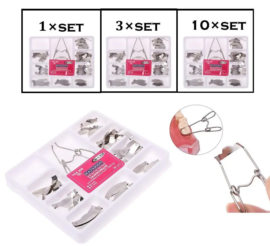 10 шт.Наборкомплект из 3 предметов1 комплект зубные седло Контурные металлические матрицы матрица Универсальный комплект с пружинным зажимом No.1330
