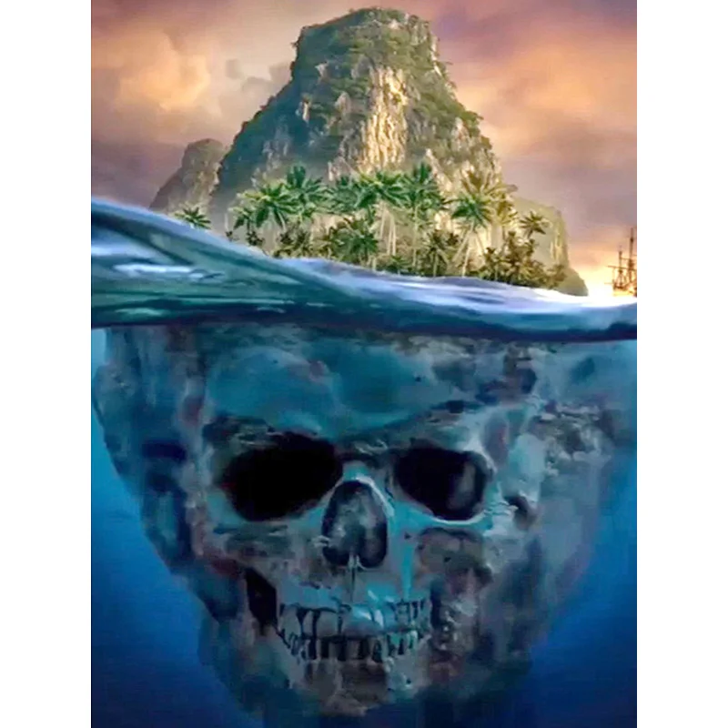5D полностью своими руками квадратный набор для рисования с круглыми камнями и полотном с вышивкой остров черепа алмазов картина цветок вышивка крестом Стразы Декор подарок I77