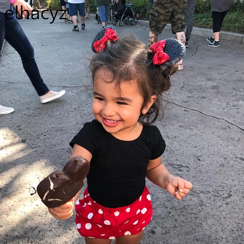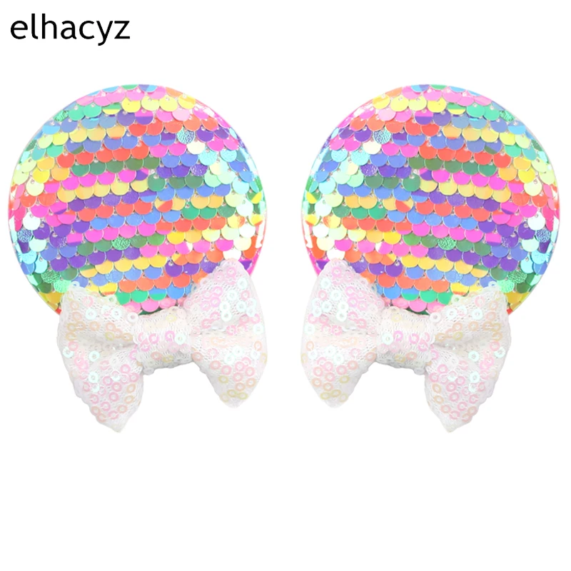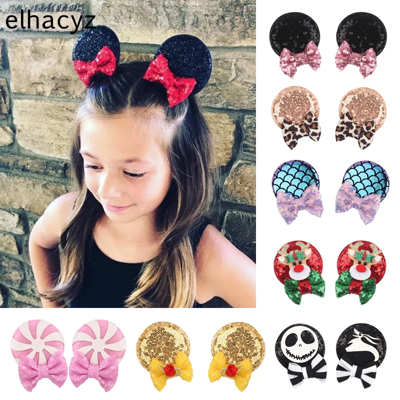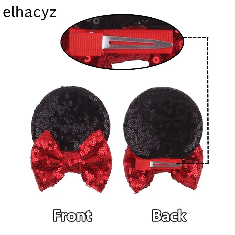 1 пара милые блестящие зажимы для волос с ушками мультяшной Мыши бантом для девочек детские шикарные заколки для волос модные головные уборы аксессуары для волос сделай сам