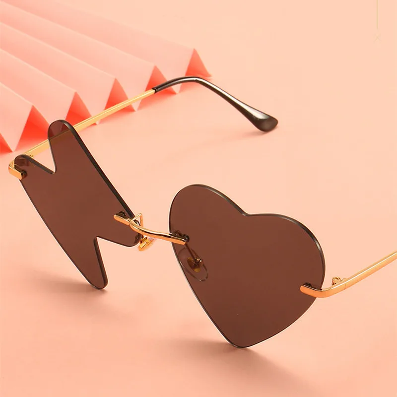 Модные солнцезащитные очки в форме сердца и молнии для женщин, новинка 2020, модные солнцезащитные очки без оправы в океанической пленке, индивидуальные прозрачные линзы, очки UV400