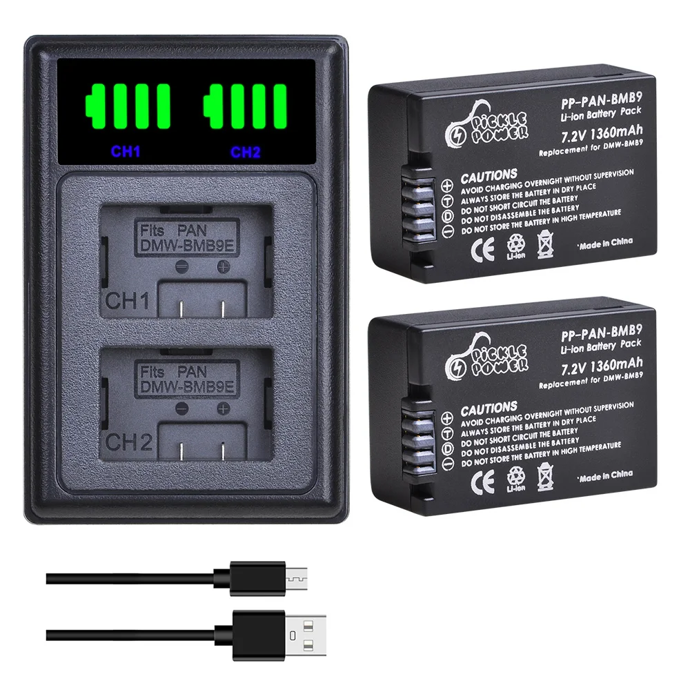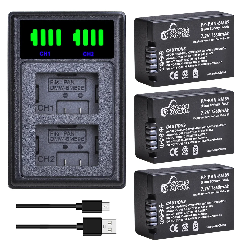DMW-BMB9 питания Pickle DMW-BMB9E DMW BMB9 батарея + LED USB зарядное устройство для Panasonic Lumix DMC FZ40K FZ45K FZ47K FZ48K FZ60 FZ70 FZ80 FZ100 FZ150 V-Lux2.