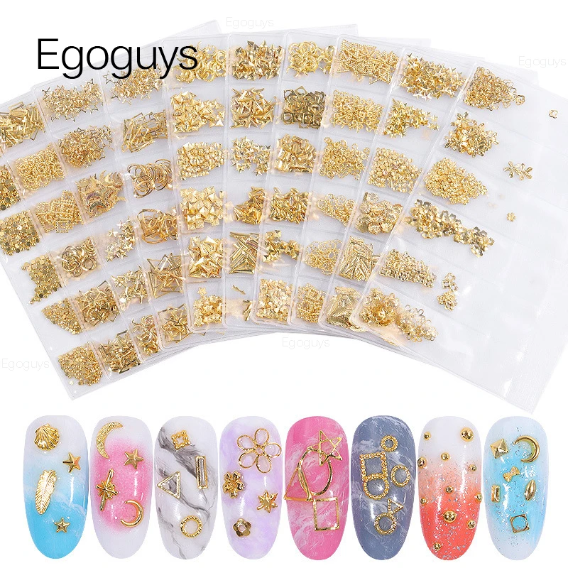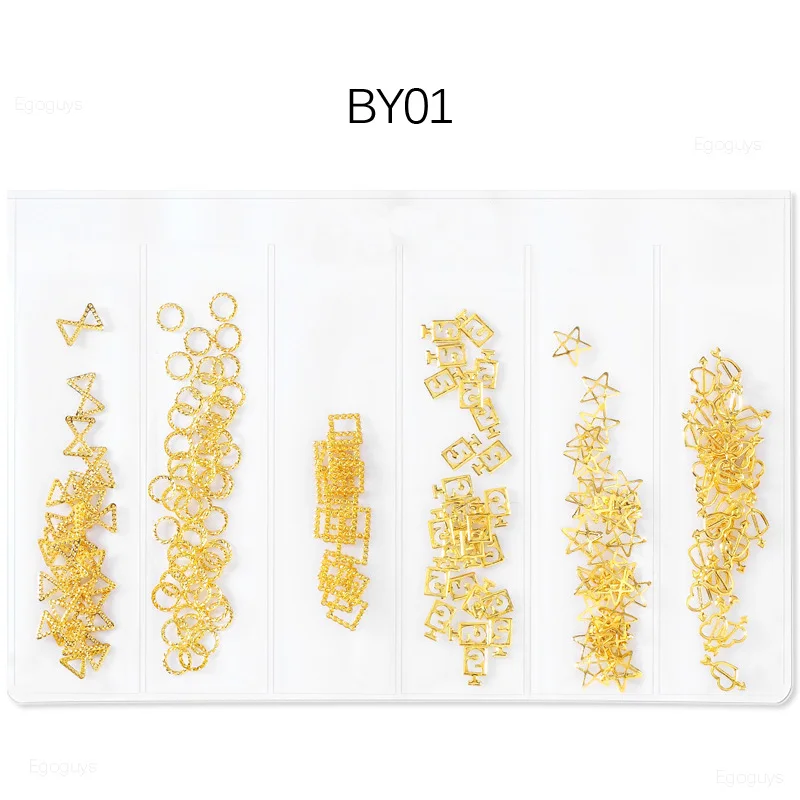 6 ячеексумок полые металлические заклепки украшения для ногтей золотые серебряные шпильки Геометрическая рамка наклейки для ногтей Сделай Сам маникюрный лак Декор для ногтей