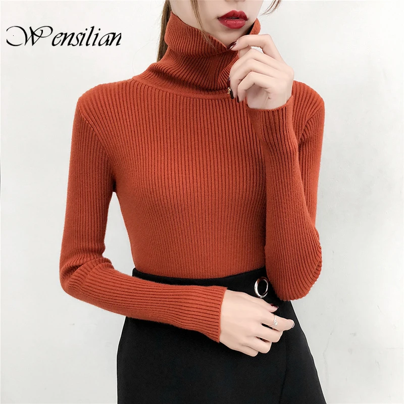 Зимняя одежда, женские свитера, Повседневная вязаная водолазка, мягкий джемпер с воротником-поло, модные облегающие пуловеры, женские свитера, Женский пуловер