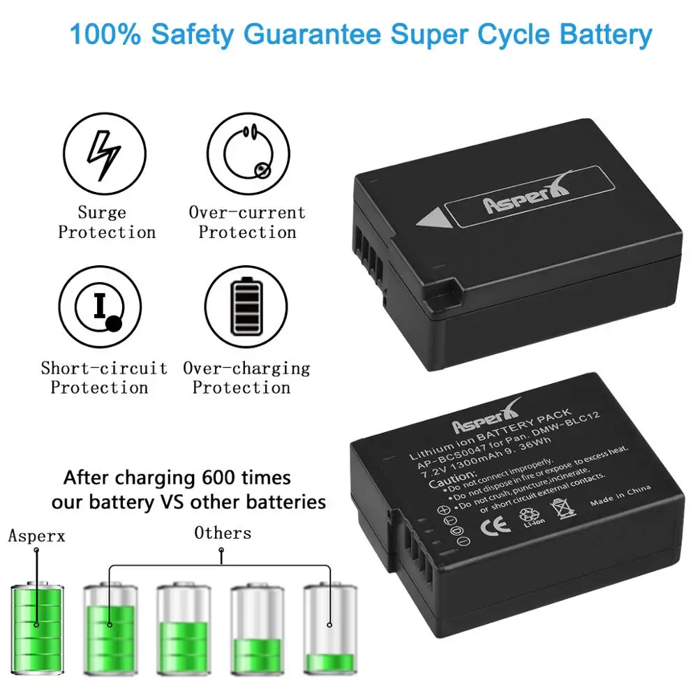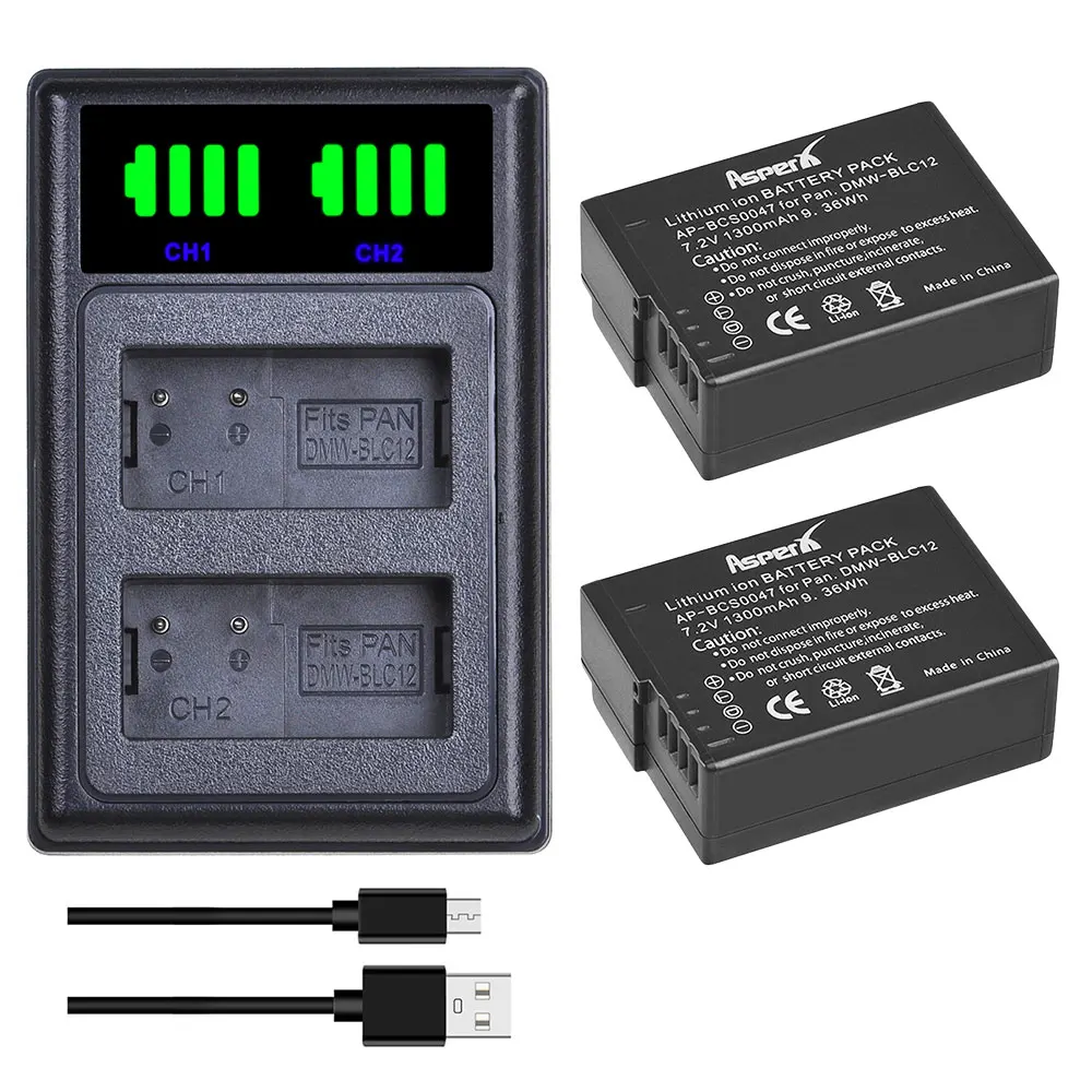 2 × DMW-BLC12 BLC12 DMW-BLC12E DMW-BLC12PP батарея Bateria + двойное зарядное устройство для Panasonic Lumix DMC-G85 FZ200 FZ1000 G5 G6 GH2 GX8