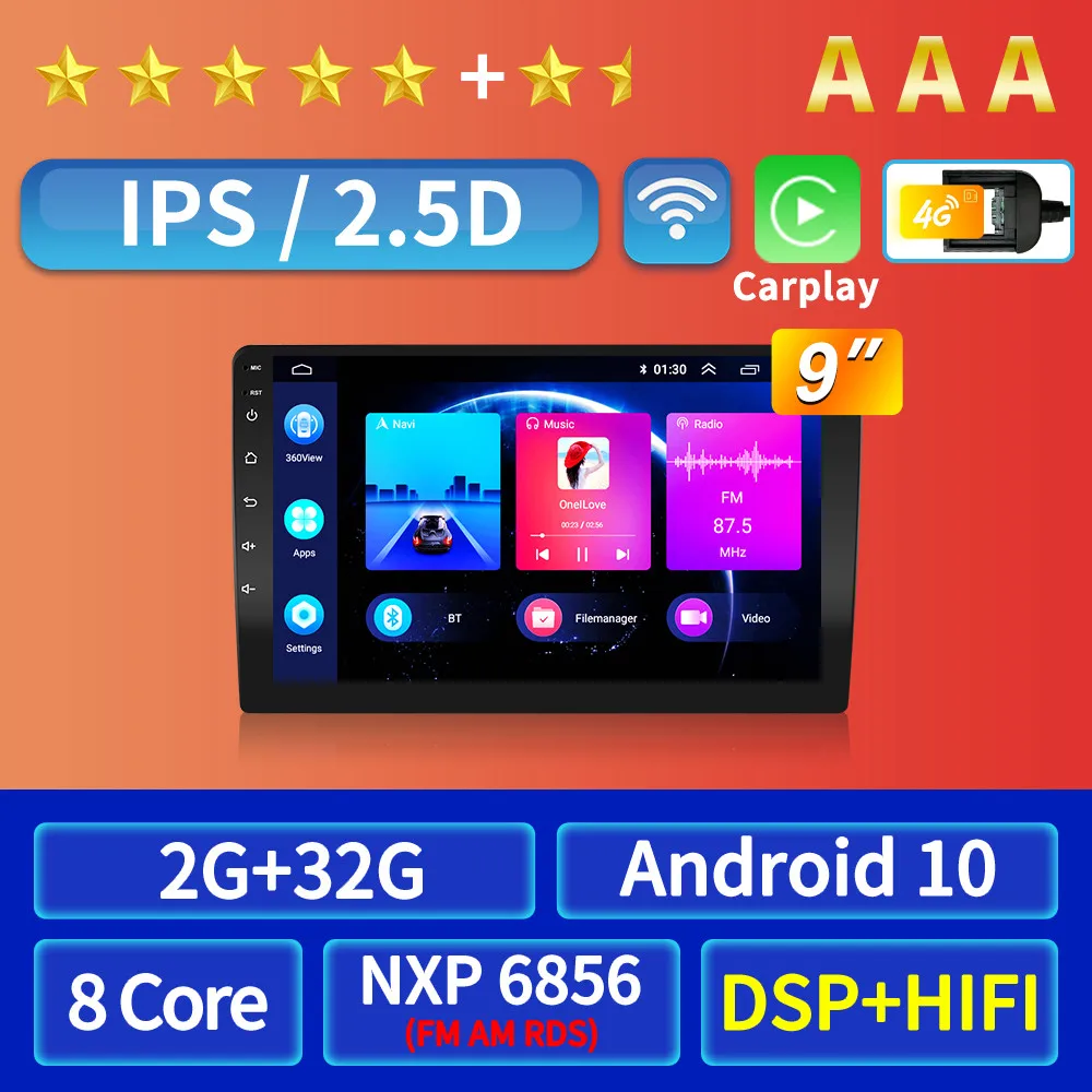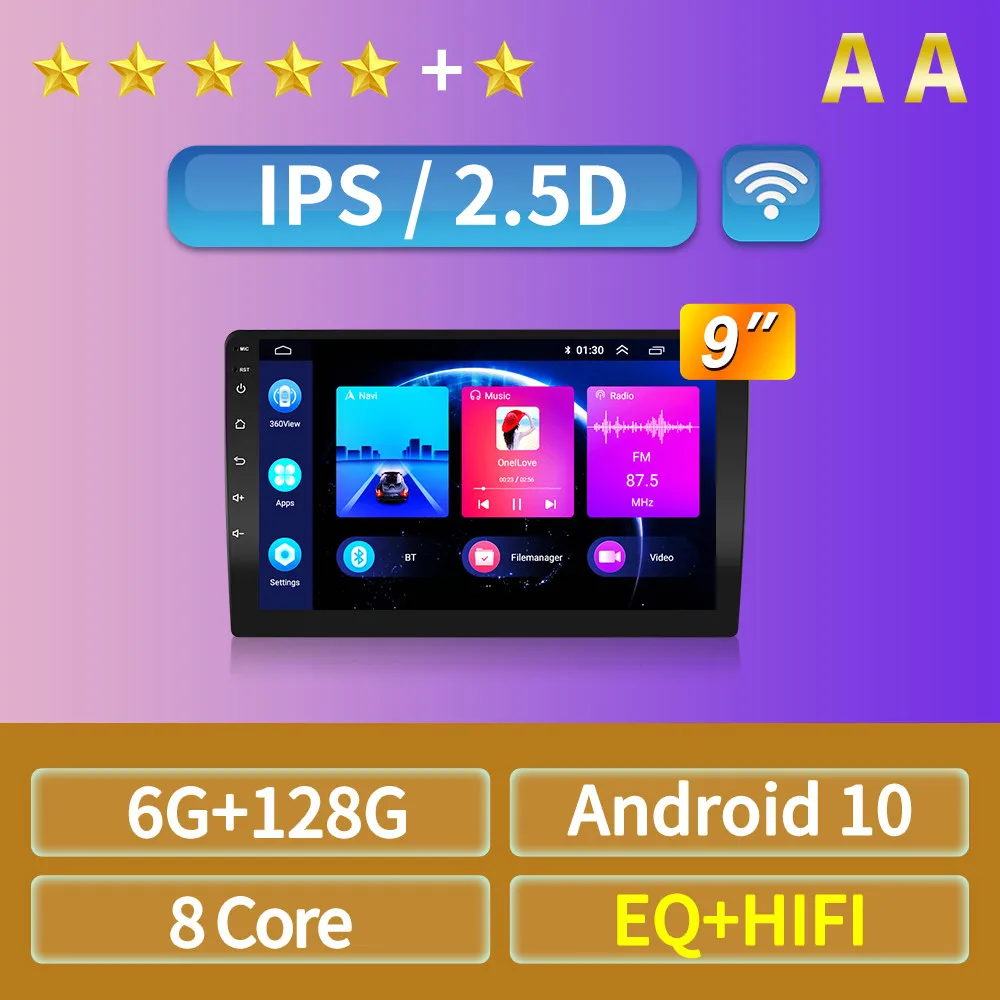 Автомобильный мультимедийный видеоплеер, 8 ядер, Android 10, 2 Din, радио, 9 дюймов, IPS, ОЗУ 6 ГБ, ПЗУ 128 ГБ, навигация, GPS, аудио, 2 Din, DVR