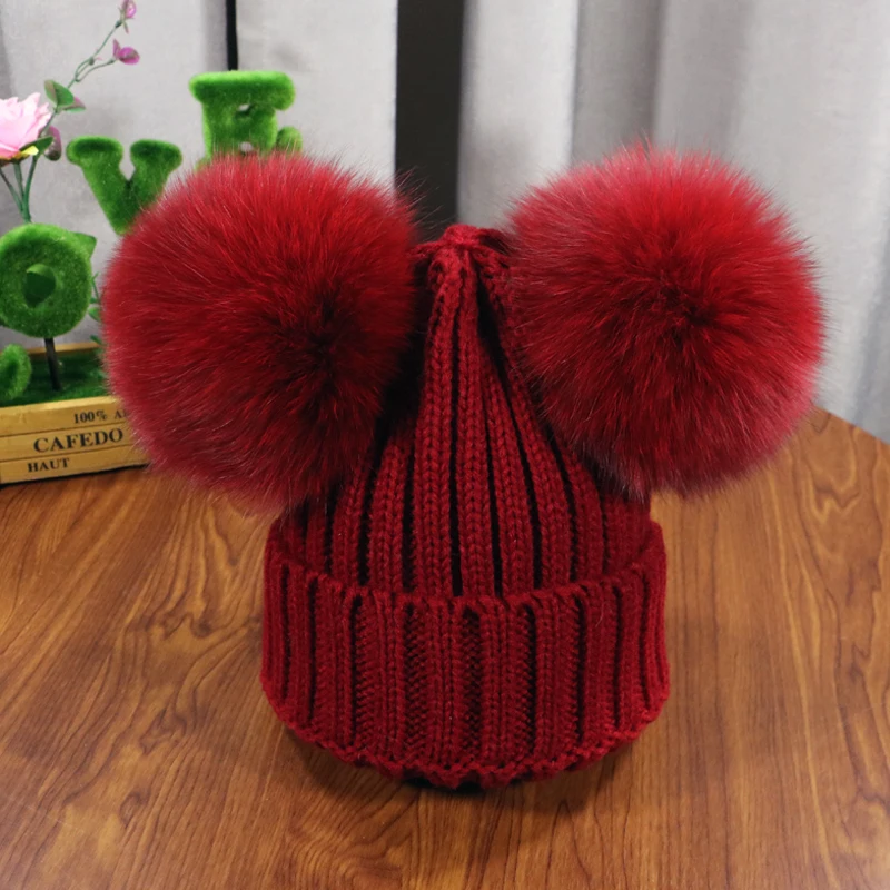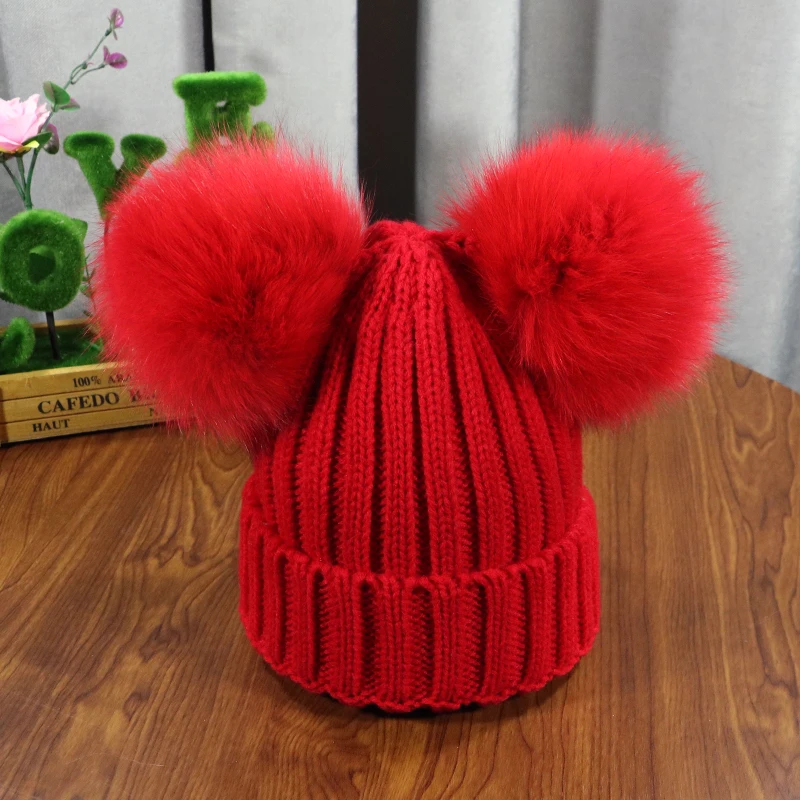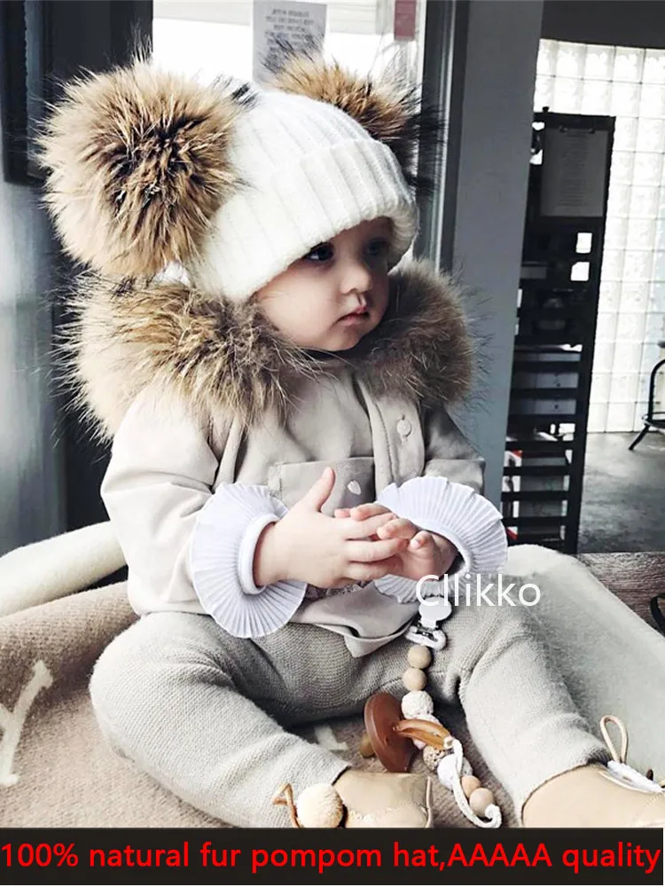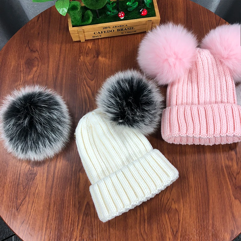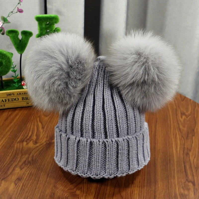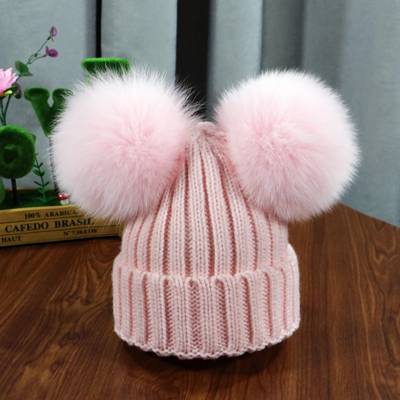 Зимняя детская шапка с помпоном из натурального меха, милая вязаная теплая шапка для мальчиков и девочек, вязаные теплые шапки для малышей