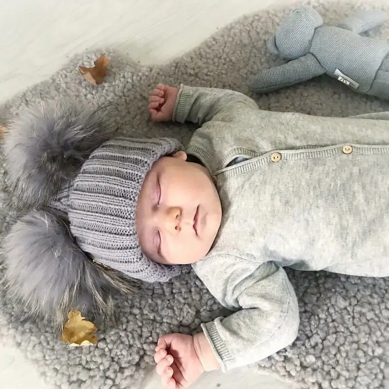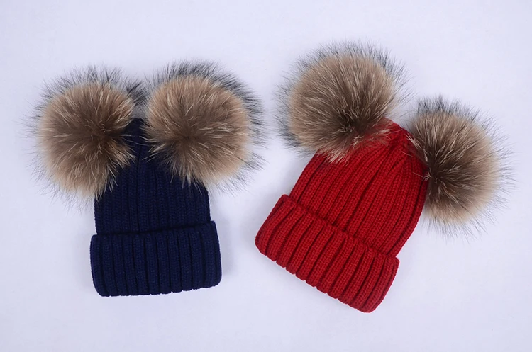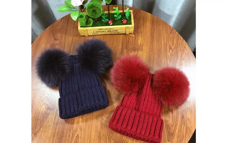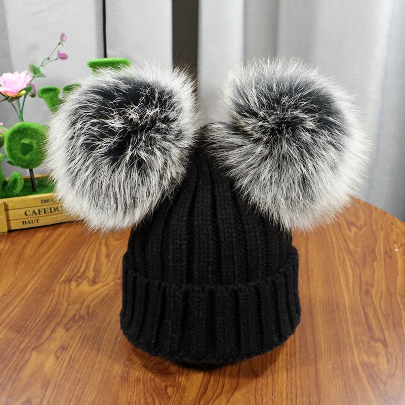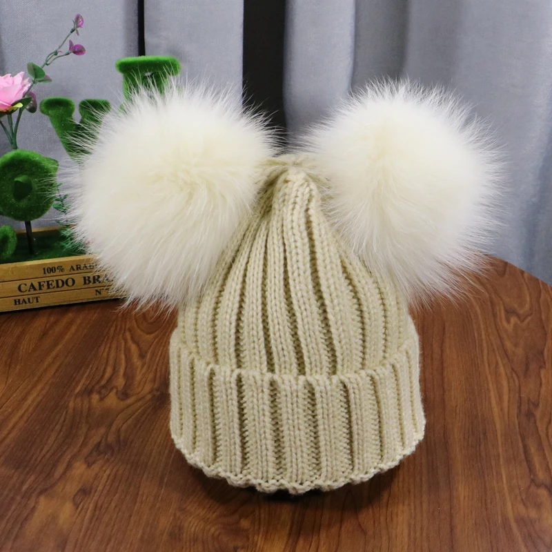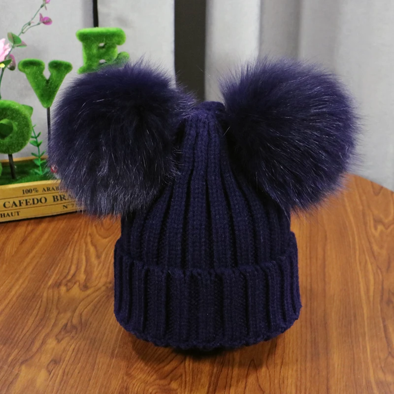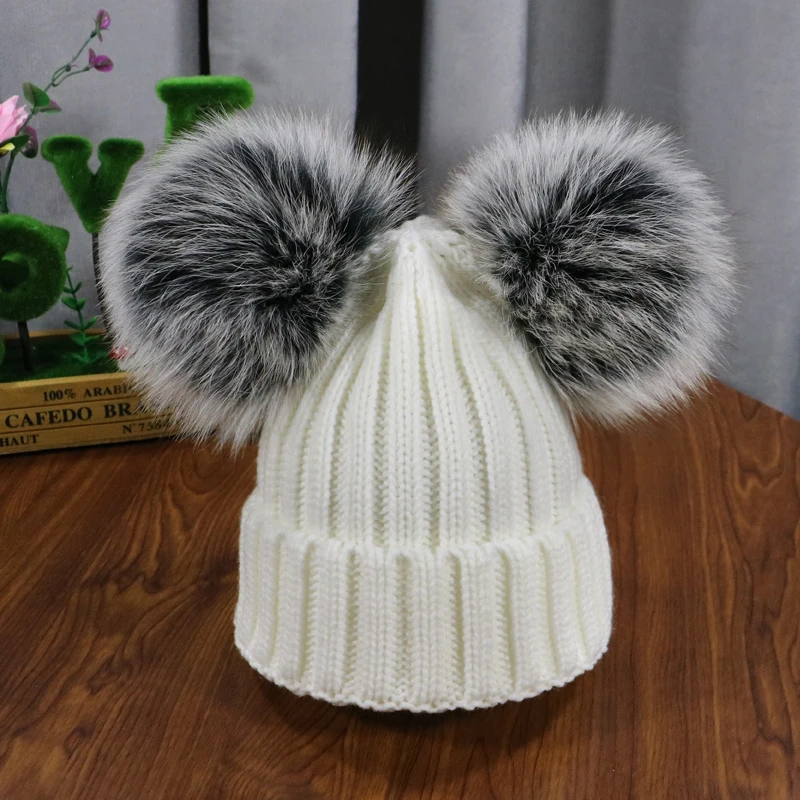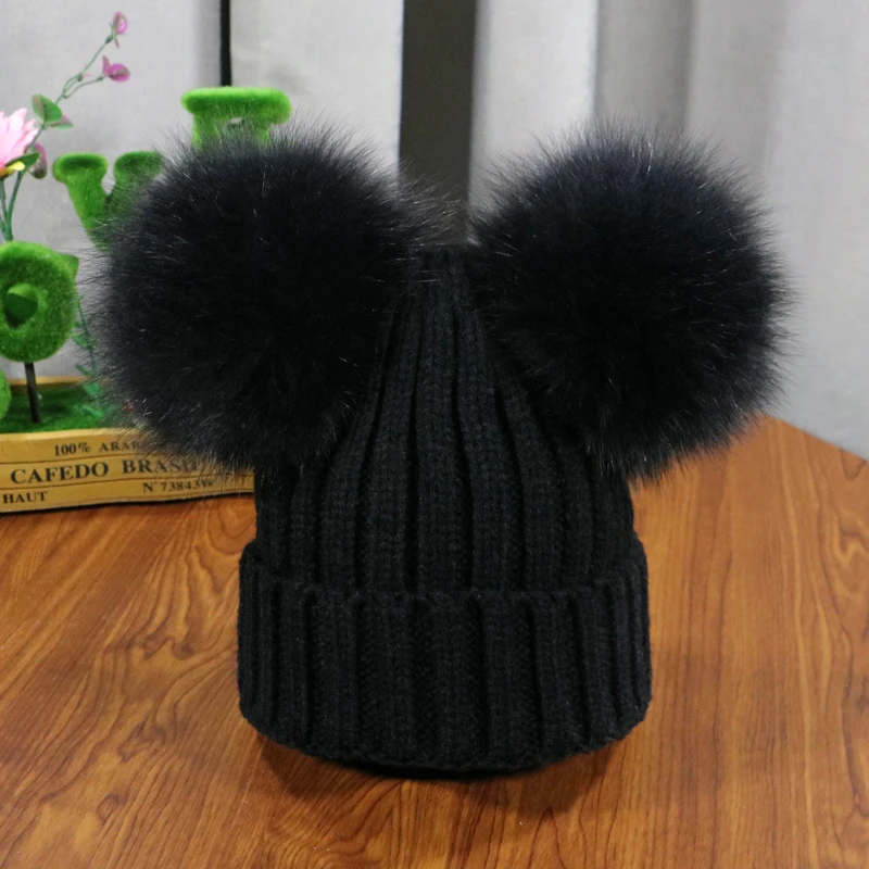 Зимняя детская шапка с помпоном из натурального меха, милая вязаная теплая шапка для мальчиков и девочек, вязаные теплые шапки для малышей