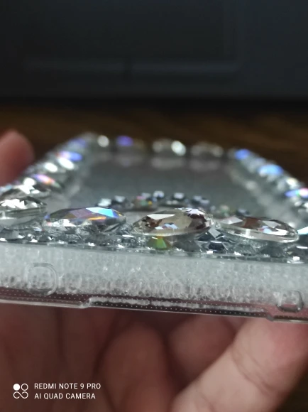 Стразы вокруг камеры держатся на двух стороннем скотче. не особо надежно. время покажет.